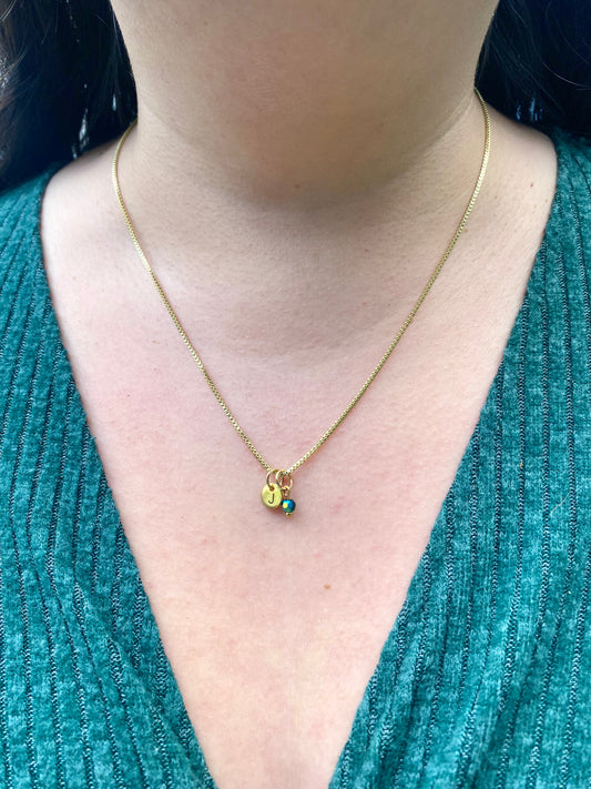 Custom Dainty Initial Name Necklace with Birthstone